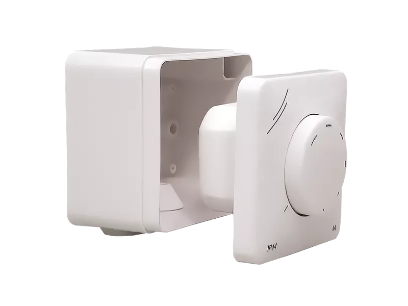 Regulator prędkości zaprojektowany do silników sterowanych napięciem jednofazowym, z maksymalnym prądem 1,5 lub 3A. Minimalna prędkość może być regulowana za pomocą wewnętrznego potencjometru. Niezregulowane wyjście jest aktywne, gdy silnik jest włączony. Obudowa pozwala na montaż podtynkowy (IP44) lub natynkowy (IP54). Sterowanie mikroprocesorowe zapewnia dokładną kontrolę silnika i minimalizuje hałas silnika. Do regulacji napięcia silnika i prędkości stosowane jest sterowanie kątem fazy (technologia Triac). Ten regulator zmiennej prędkości jest często stosowany w wentylatorach sufitowych, wentylatorach wyciągowych do łazienek, wentylatorach wyciągowych itp.