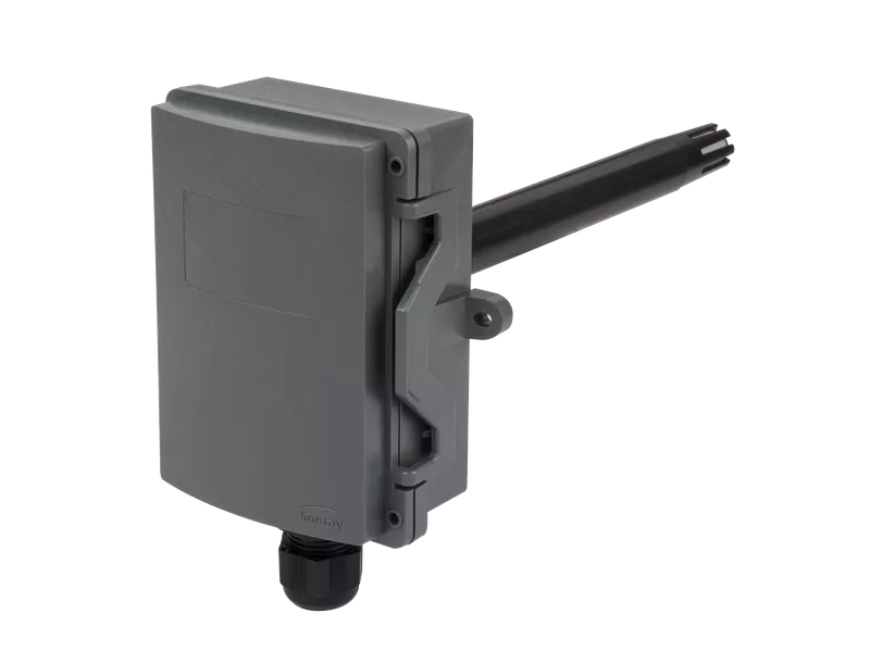 Ten uniwersalny, analogowy czujnik wyróżnia się cenną funkcją automatycznego wykrywania ustawień wejścia sterownika – 4-20mA lub 0-10Vdc. Eliminuje to konieczność stosowania zworek wyjściowych, które mogłyby zostać błędnie ustawione. Wbudowana dioda LED wskazuje aktualnie aktywny typ wyjścia. Czujnik jest również dostępny z pasywnym rezystancyjnym wyjściem do pomiaru temperatury oraz innymi pasywnymi wyjściami.