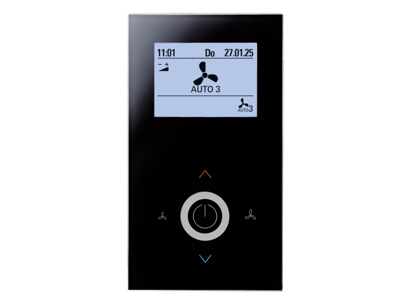 Termostat JOY firmy Thermokon zapewnia efektywną kontrolę klimatu w pomieszczeniach. Posiada płaską obudowę, dotykowy interfejs ze szkła, przycisk zasilania oraz podświetlany wyświetlacz LCD, który pokazuje temperaturę, stopień pracy wentylatora oraz datę i godzinę.