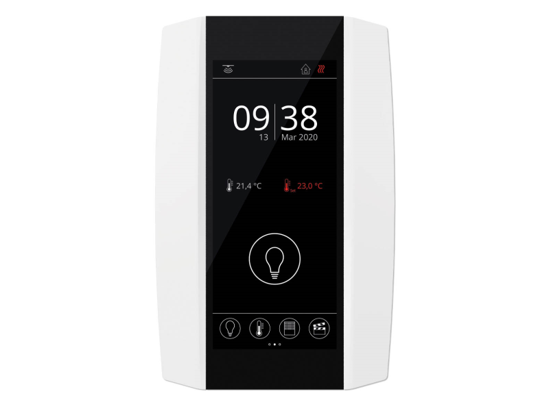 Wysokiej rozdzielczości 4,8-calowy wyświetlacz dotykowy, szlachetna szklana powierzchnia oraz intuicyjna obsługa „NOVOS Touch” stanowią prawdziwe rozwiązanie klasy premium. Oprócz sterowania klimatyzacją, jasnością, zaciemnieniem i indywidualnymi scenami, „NOVOS Touch” wyróżnia się jednoczesnym pomiarem temperatury, wilgotności, CO2, VOC oraz monitorowaniem wartości pomiarowych za pomocą systemu sygnalizacji świetlnej.