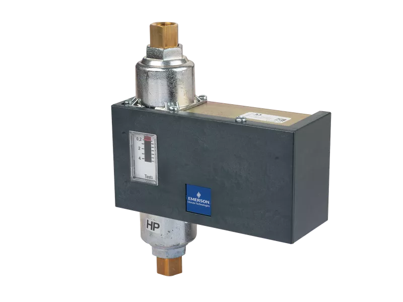 Presostat różnicy ciśnień dla cieczy, odpowiedni do monitorowania statusu przepływu w pompach, chłodnicach, zaworach itp. Przełącznik ma regulowany punkt ustawienia od 0,3 bar do 4,5 bar z ustaloną różnicą ciśnień wynoszącą 0,2 bar.