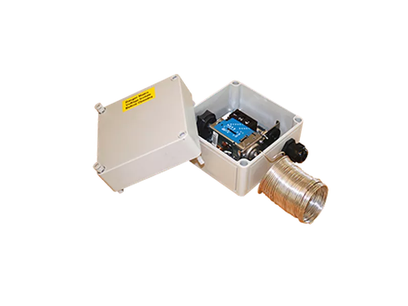 - Termostaty sterujące (automatyczny reset) – z regulowanym punktem nastawy, regulowaną różnicą przełączeń i funkcją automatycznego resetu, umożliwiające przełączanie wyjścia do grzałki lub sterownika.